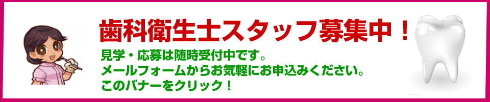 現在の歯科医療は様々な治療法および材料があります。それら全てを患者様に丁寧に説明して選んでいただく事で、治療終了時に十分満足いただけるよう心がけております。各ユニットに装備されたデジタルTVで、口腔内写真・レントゲン画像等を拡大しながら病状を説明します。当院は基本的に予約制ですが、急患の方、お仕事の都合で予約日の変更を余儀なくされる方のために、随時受付もしています。歯周病に関しましては、予防及び治療効果を促進させる次亜塩素酸水を取り入れた治療を行っております。また歯科検診・妊婦検診・歯周病検診など各種検診も受付ております。待ち時間の短縮、細やかな気配りと治療を心がけております。